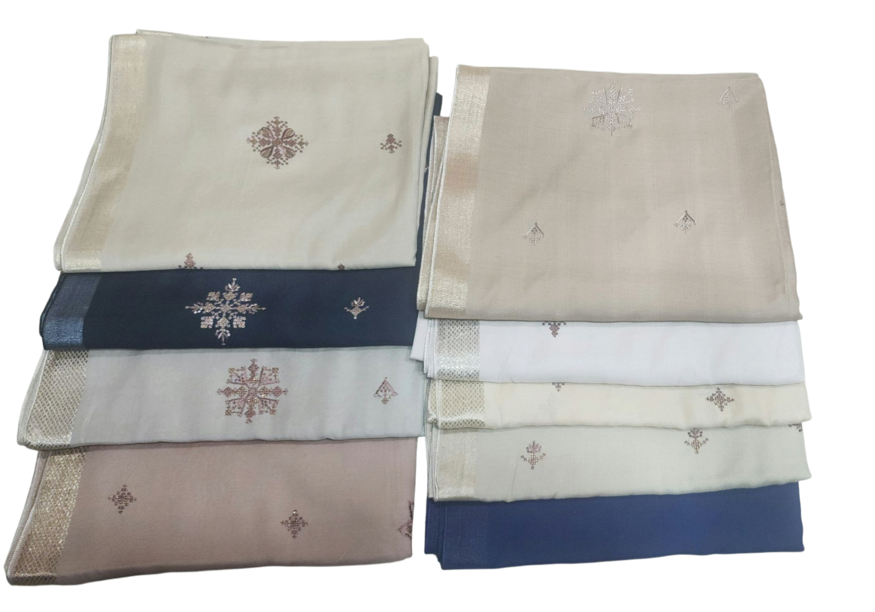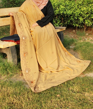 A decorative design running along one or both vertical edges of the shawl. It can include embroidery, lace, or printed motifs. Boti: Small, repeated embroidered or printed motifs (usually floral or geometric), spread throughout the fabric body. This style is quite elegant and popular in South Asian fashion, especially for summer or festive wear